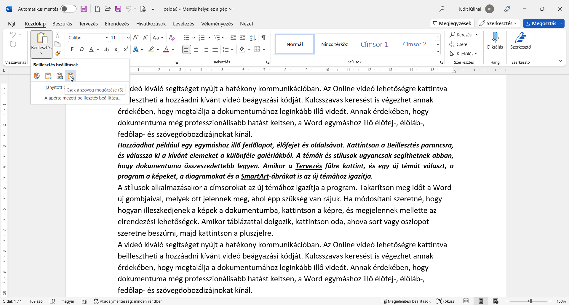 A különböző formátumok beállításához, illetve egyéb műveletek elvégzéséhez általában a szóban forgó szövegrészt ki kell jelölnünk. Nézzük, milyen módszerek állnak a rendelkezésünkre.